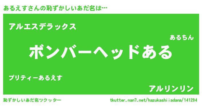 | 意味不明あだ名 | 『たけのこ科あるえす属』『自称あるえす』 |