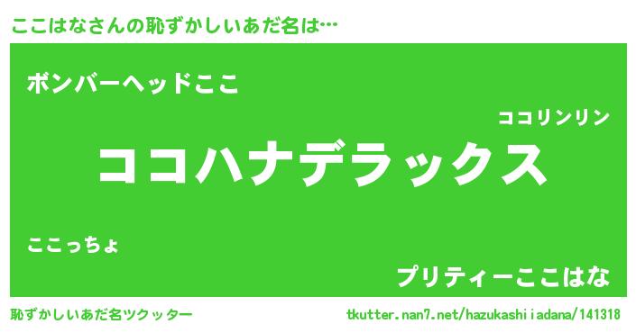| ヒーロー風カッコイイあだ名 | 『サイバー戦士ココハナ』『魔戒騎士ココ』 |
