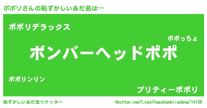 | ヘコむあだ名 | 『ポポにー』『酢こんぶ』『ポポお』 |