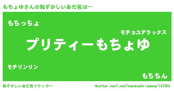 | 意味不明あだ名 | 『ペロリンもちょゆ』『永久保存もちょゆ』 |