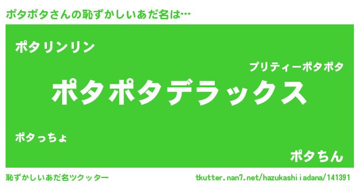 | 意味不明あだ名 | 『自称ポタポタ』『永久保存ポタポタ』 |