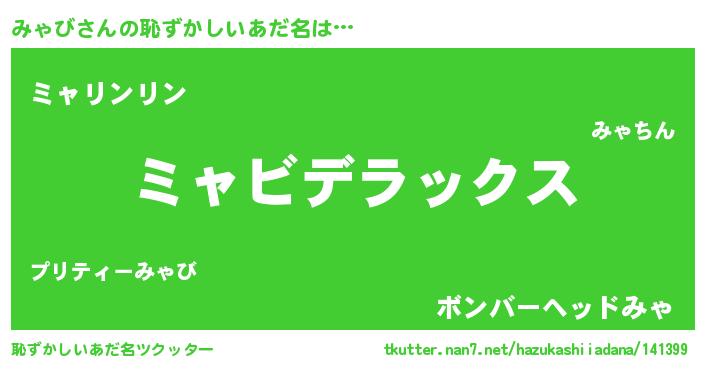 | 女子向けラノベタイトル風あだ名 | 『みゃびなんてお断りですっ。』 |