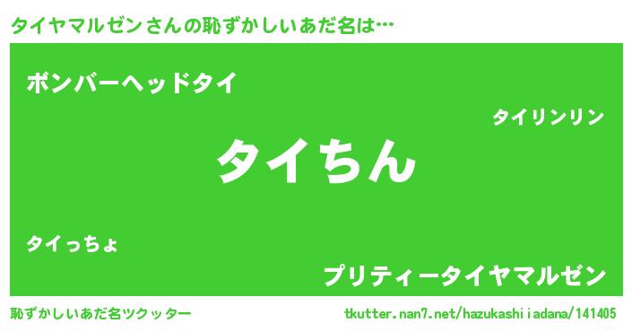 | 欧米人風あだ名 | 『ダレノガレタイヤマルゼン』 |