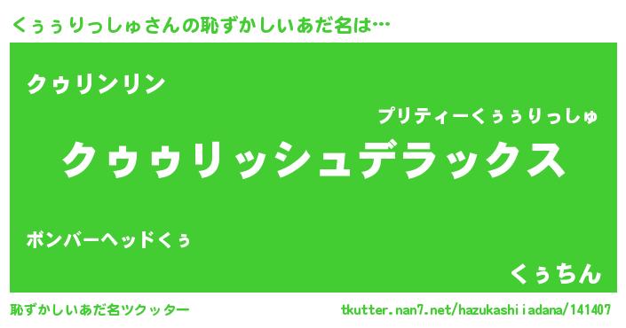 | 意味不明あだ名 | 『自称くぅぅりっしゅ』 |