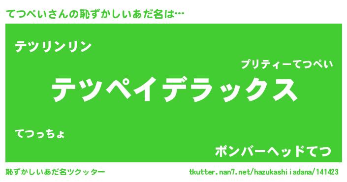 | 女子向けラノベタイトル風あだ名 | 『てつぺいなんてお断りですっ。』 |