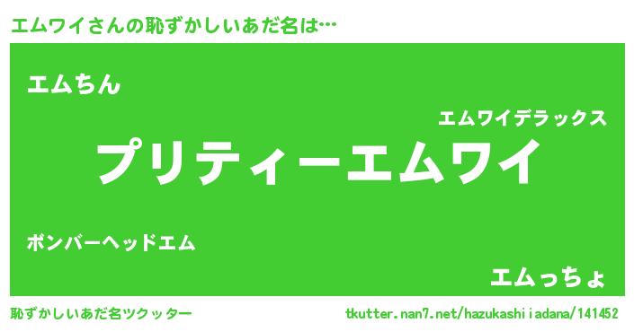 | ヒーロー風カッコイイあだ名 | 『スーパーエムワイ』『ネオエムワイ』 |