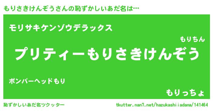 | 男性向けラノベタイトル風あだ名 | 『もりさきけんぞうの憂鬱』 |