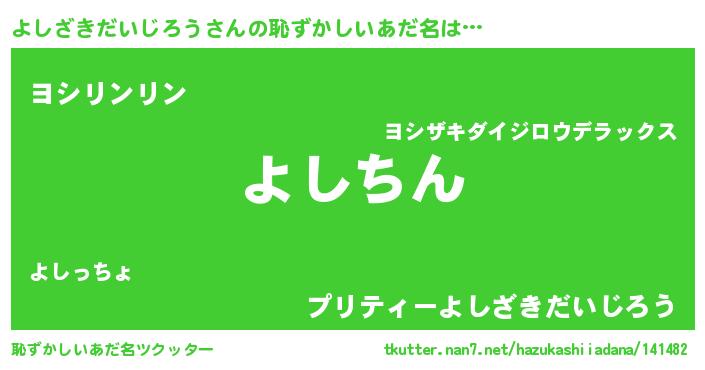| ヘコむあだ名 | 『よしざきだいじろう(笑)』『よしぷりん』 |