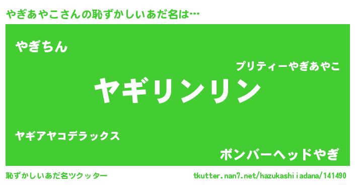 | ヘコむあだ名 | 『やぎお』『やぎあやこ(笑)』 |