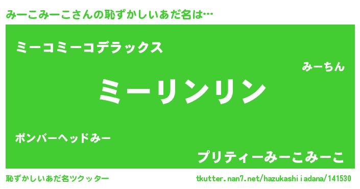 | 意味不明あだ名 | 『とにかく怪しいみーこみーこ』 |