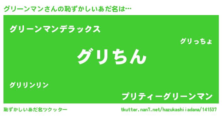 | 意味不明あだ名 | 『永久保存グリーンマン』 |