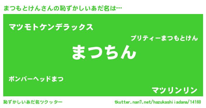 | ヘコむあだ名 | 『まつもとけん(苦笑)』『まつ太郎』 |