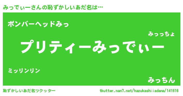 | 男性向けラノベタイトル風あだ名 | 『緋弾のミッディー』 |