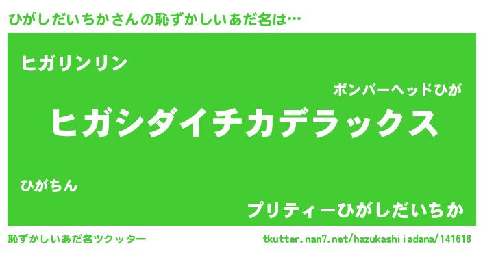 | 意味不明あだ名 | 『住所不定無職ひがしだいちか(43歳)』 |
