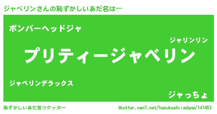 | 男性向けラノベタイトル風あだ名 | 『ジャベリンの憂鬱』『緋弾のジャベリン』 |