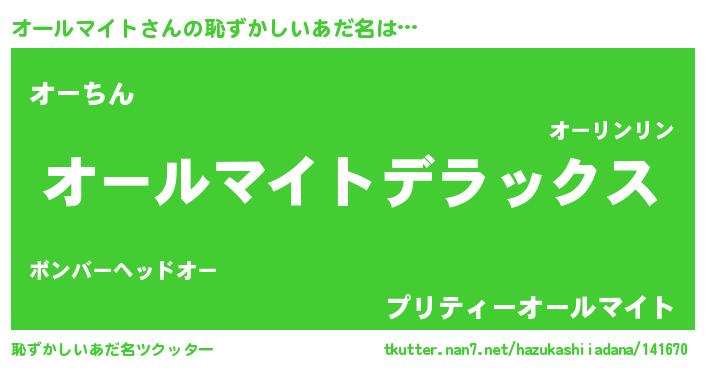 | 男性向けラノベタイトル風あだ名 | 『オールマイトスレイヤー』 |