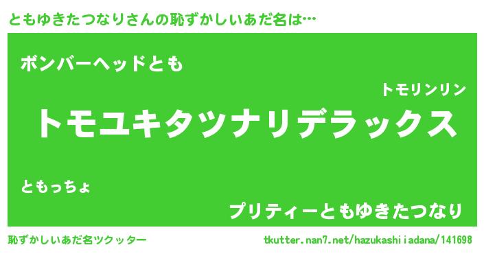 | 女子向けラノベタイトル風あだ名 | 『ともゆきたつなりなんてお断りですっ。』 |