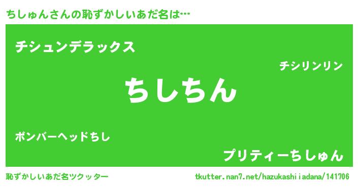 | ヒーロー風カッコイイあだ名 | 『ネオチシュン』『最強戦士チシュン』 |