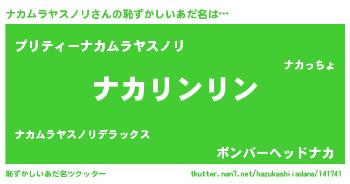 | 男性向けラノベタイトル風あだ名 | 『ナカムラヤスノリに滅ぼされるだけの簡単なお仕事です』 |