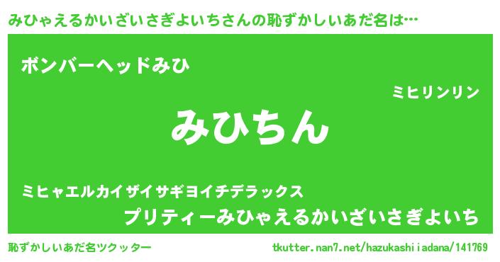 | ヘコむあだ名 | 『みひゃえるかいざいさぎよいち(笑)』 |