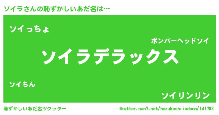 | 男性向けラノベタイトル風あだ名 | 『この素晴らしい世界にソイラを!』 |