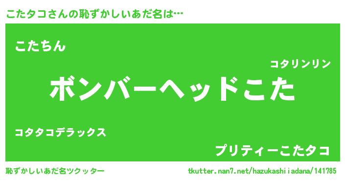 | ヒーロー風カッコイイあだ名 | 『天空の使者こたタコ』『ネオコタタコ』 |