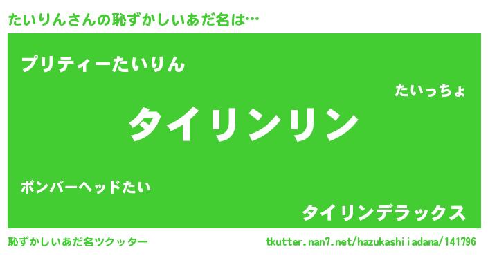 | 女子向けラノベタイトル風あだ名 | 『たいりん様がみてる』『闇のたいりん』 |