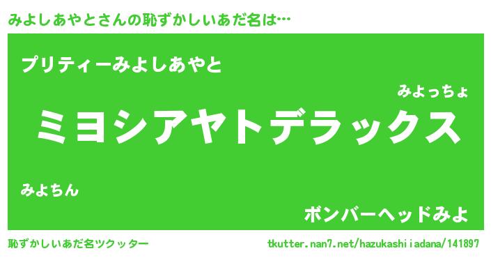 | 意味不明あだ名 | 『自称みよしあやと』 |