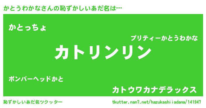 | 女子向けラノベタイトル風あだ名 | 『かとうわかなの卵を拾いまして』 |