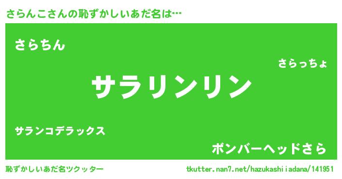 | ヘコむあだ名 | 『さらっ子』『さらんこ(苦笑)』 |