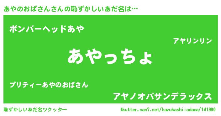 | 意味不明あだ名 | 『あやのおばさんフォーエバー』 |