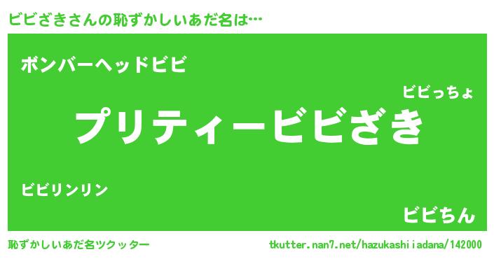 | ヒーロー風カッコイイあだ名 | 『スーパービビザキ』『愛の使者ビビざき』 |