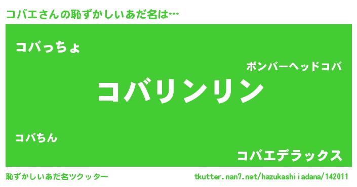 | ヒーロー風カッコイイあだ名 | 『魔戒騎士コバ』『ウルトラコバエマン』 |