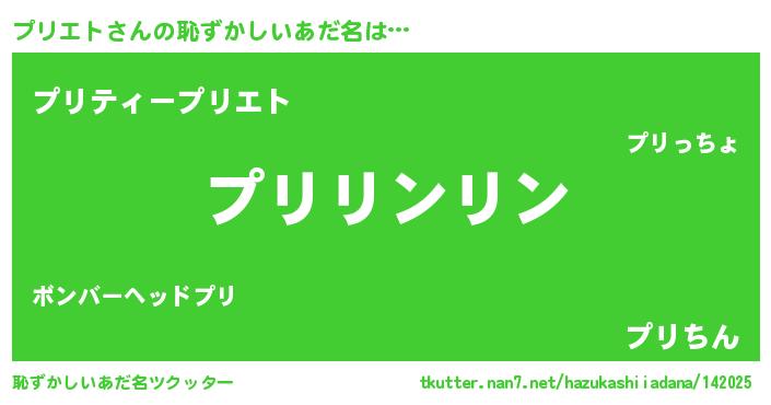 | 男性向けラノベタイトル風あだ名 | 『プリエトに滅ぼされるだけの簡単なお仕事です』 |