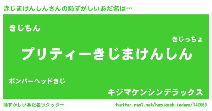 | ヘコむあだ名 | 『きじにゅー』『きじまけんしん(震え声)』 |