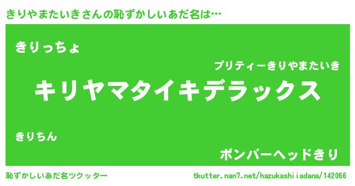 | ヘコむあだ名 | 『なまこ酢』『きりもー』『きりっ子』 |