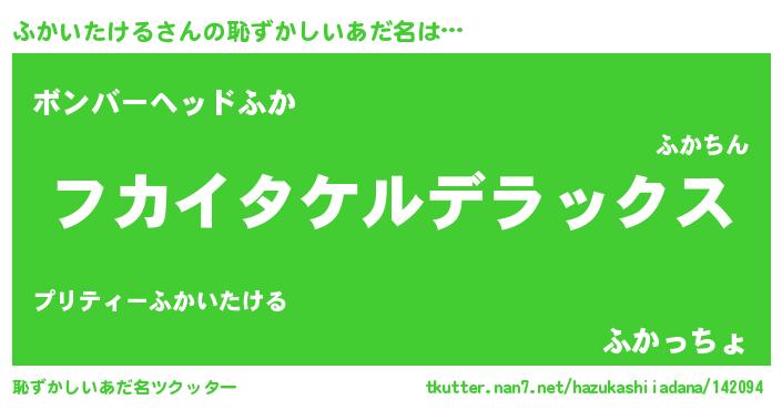 | ヒーロー風カッコイイあだ名 | 『サイバー戦士フカイタケル』 |