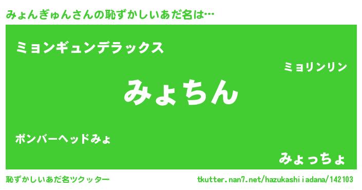 | ヒーロー風カッコイイあだ名 | 『ネオミョンギュン』『暗黒騎士ミョ』 |