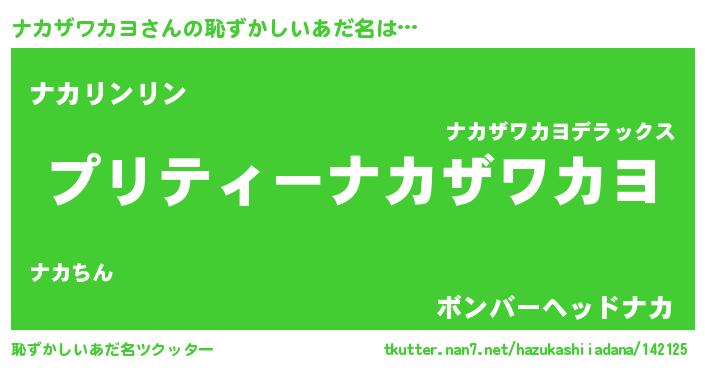 | 男性向けラノベタイトル風あだ名 | 『うちのナカザワカヨが世界を掌握している!』 |