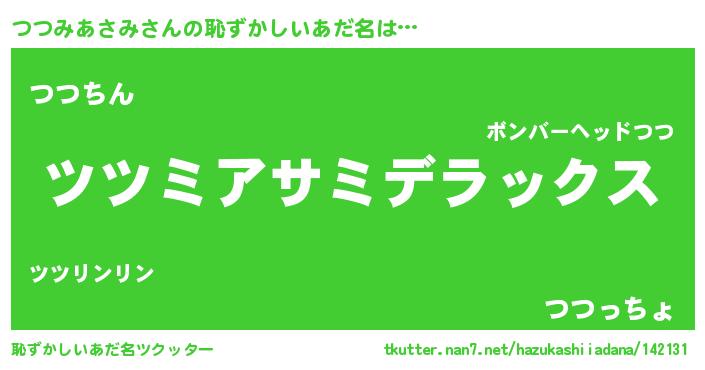 | 意味不明あだ名 | 『自称つつみあさみ』 |
