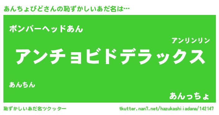 | 男性向けラノベタイトル風あだ名 | 『転生したらあんちょびどだった件』 |