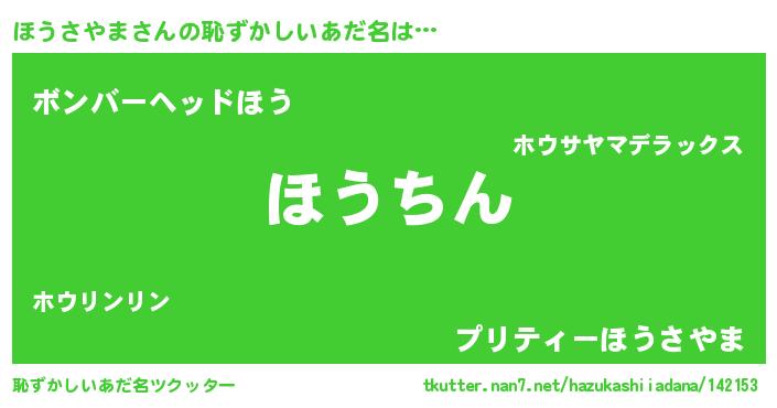 | 男性向けラノベタイトル風あだ名 | 『ほうさやま~年齢イコール彼女いない歴の魔法使い~』 |