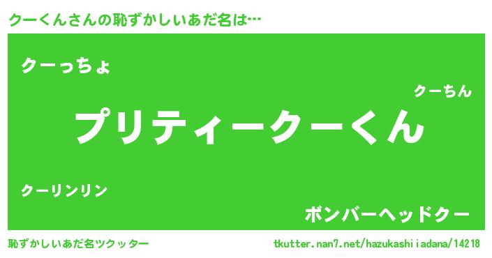 | 男性向けラノベタイトル風あだ名 | 『クーくんの憂鬱』『魔弾の王とクーくん』 |
