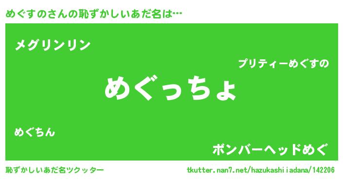 | 意味不明あだ名 | 『住所不定無職めぐすの(13歳)』 |