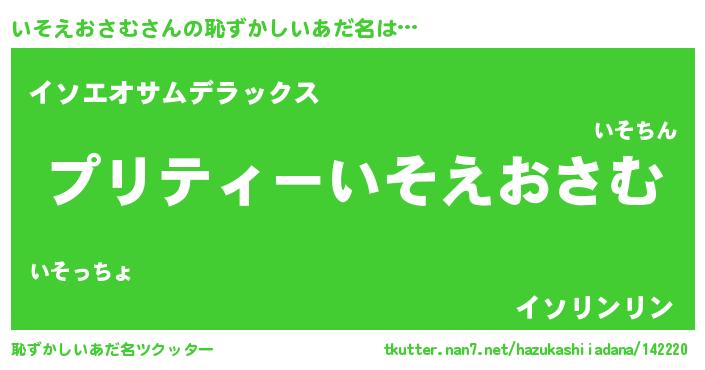 | 肩書あだ名 | 『いそえおさむ社長』『いそえおさむ閣下』 |