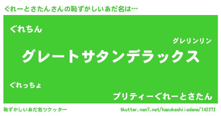 | ヘコむあだ名 | 『ぐれーとさたん(爆)』『ぐれにー』 |