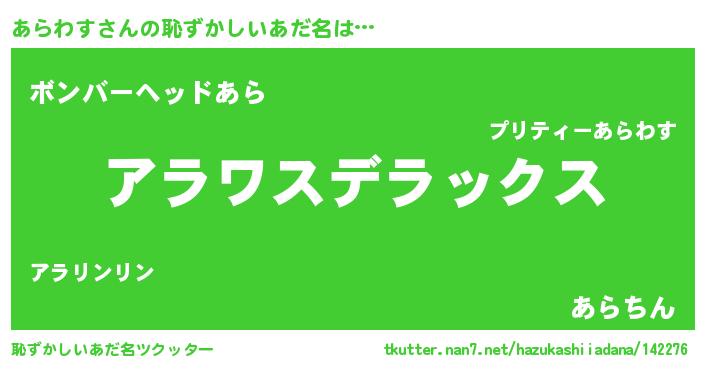 | ヘコむあだ名 | 『あらわす(笑)』『あらふぇ~』 |