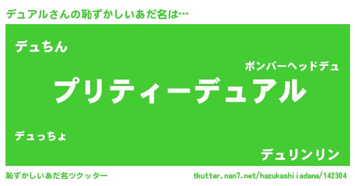 | 意味不明あだ名 | 『ペロリンデュアル』『永久保存デュアル』 |