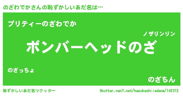 | ヘコむあだ名 | 『のざにー』『のざわでか(苦笑)』 |