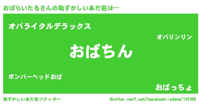 | 男性向けラノベタイトル風あだ名 | 『この素晴らしい世界におばらいたるを!』 |